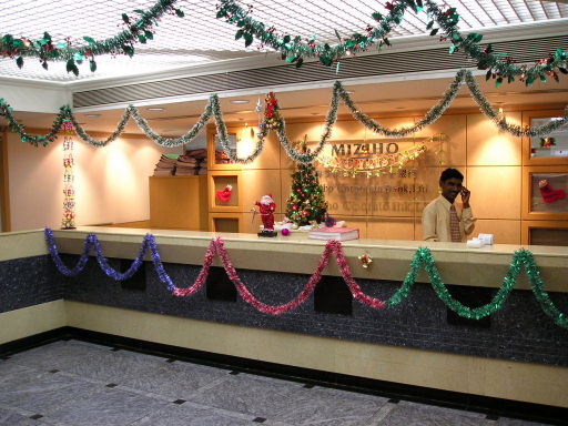| 獣医さんに注射されているダボ | 傷を消毒中 | 痛かったな、よしよし(想像) | ニューデリー・みずほ銀行 クリスマスの飾りつけがされています。 |