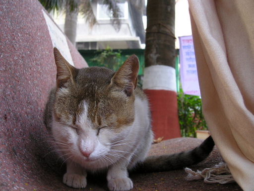 | ムンバイの公園にいる犬 | ムンバイの公園にいる猫 | エレファンタ島へ向かう船 | 桟橋から島へ続く道 |