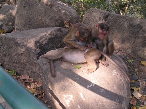 | エレファンタ島の石窟内の像 | 石窟内の中心となる像(シバ) | エレファンタ島の猿 | ノミ取りをする猿 |